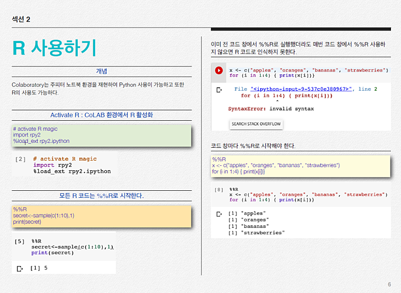 - 매번 코드 창에서 %%R을 사용하지 않으면 R코드로 인식하지 못한다.