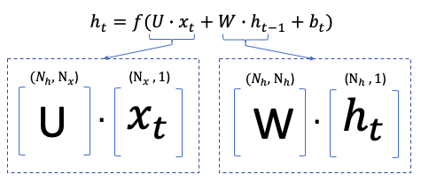 이미 이에 대한 아이디어를 알고 있다면 수학적 설명을 스킵하고 (F.2)로 자유롭게 넘어가세요. 우리는 수학적으로 심플하게 하기 위해서 t시점에 은닉층 ht를 가졌다고 가정하고, bias bt 와 입력값 xt 항을 제거해보겠습니다. :