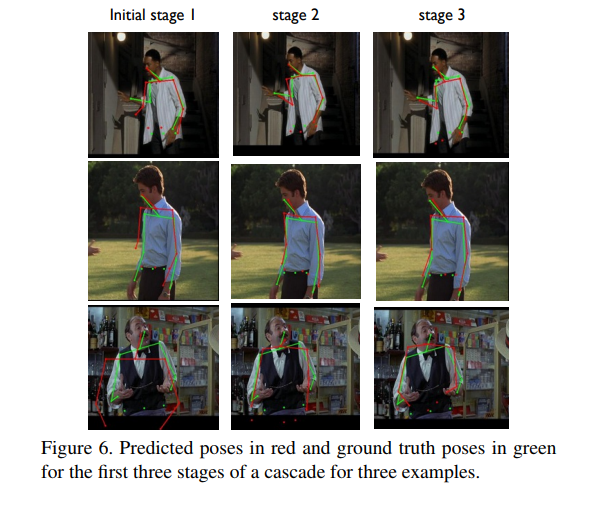 이 논문은 이 ML과제를 다루기 위해 깊은 신경망(DNNs)을 사용하는 것을 제안했습니다. 이 논문의 저자는 Google의 Alexander Toshev 와 Christian Szegedy 입니다. 포즈 추정 자체의 공식은 관절에 대한 DNN 기반 회귀입니다. 저자는 MPⅡ, LSP 와 FLIC데이터셋 과 같은 표준 벤치마크에 대한 최신의 결과를 달성했습니다. 또한 반복적인 중간 감독으로 멀티 스테이지 아키텍쳐를 결합하여 훈련하는 영향에 대해서도 분석하였습니다.