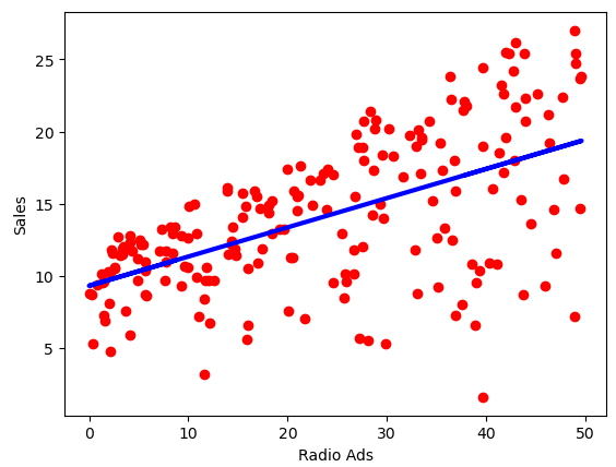 print("Radio simple linear regression R-Square :", radio_rsq)