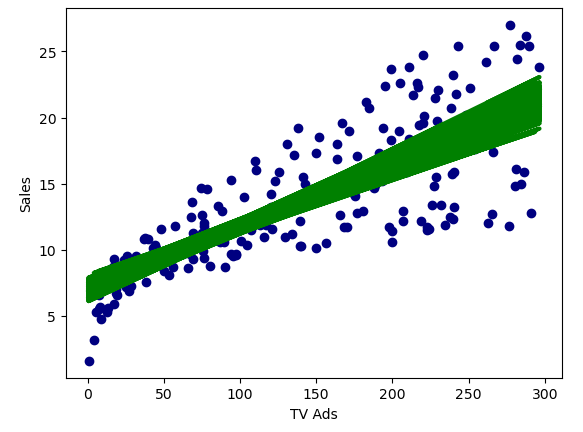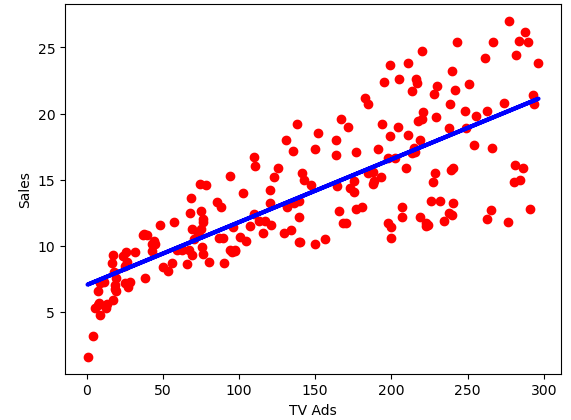 TV = Ad_df.TV.values.reshape(len(Ad_df['Sales']), 1)