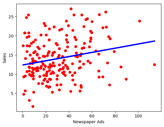 newspaper_rsq = newspaper_model.score(Newspaper, Sales)
