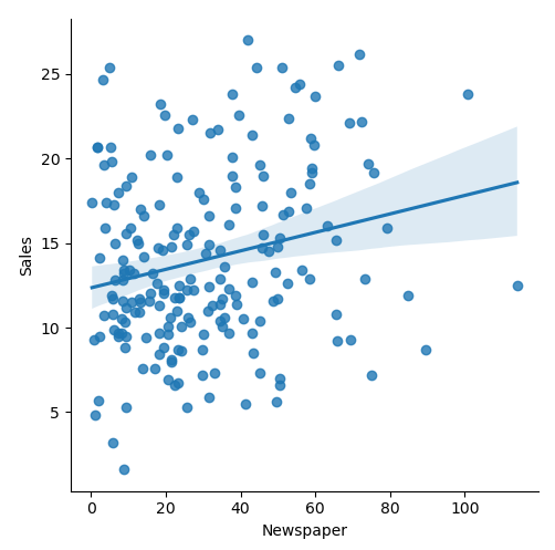 print("Newspaper simple linear regression R-Square :", newspaper_rsq)