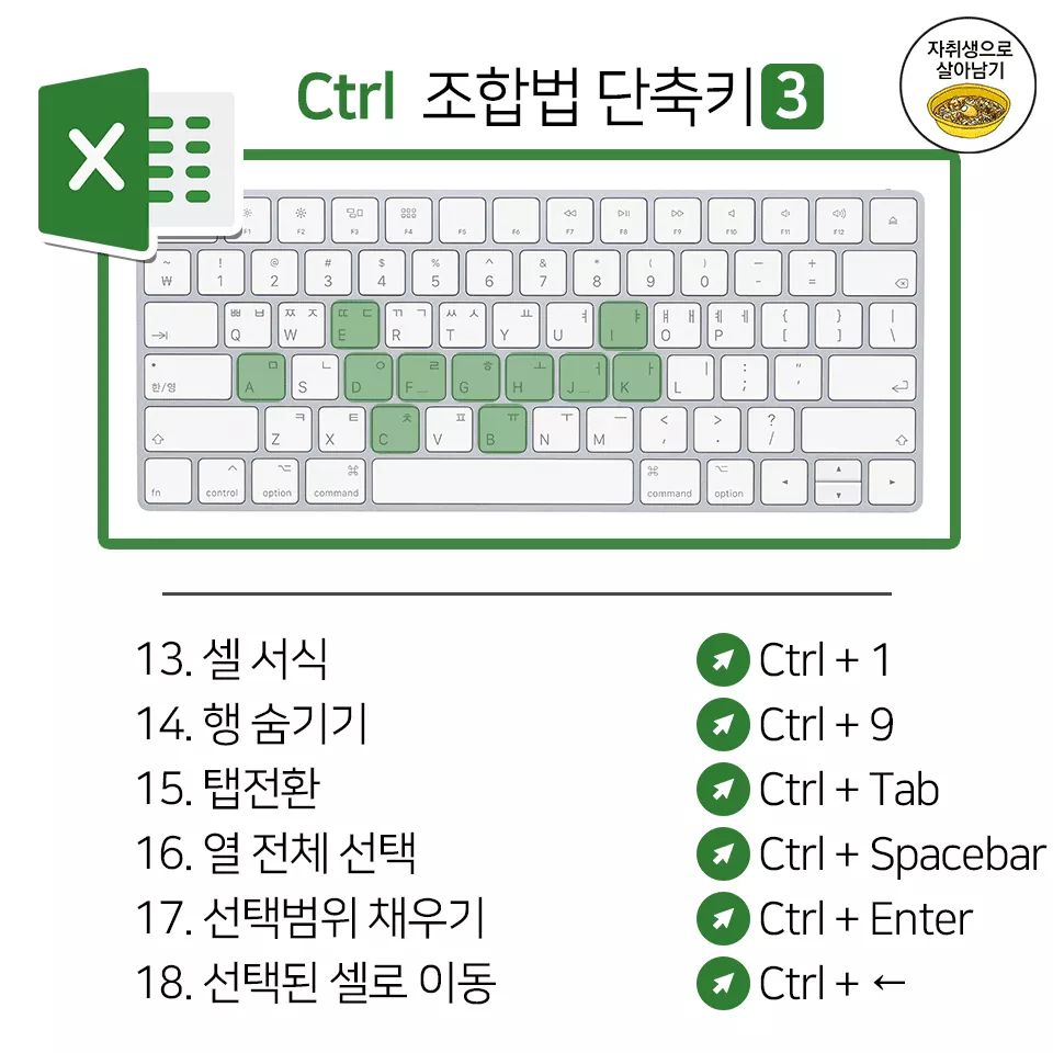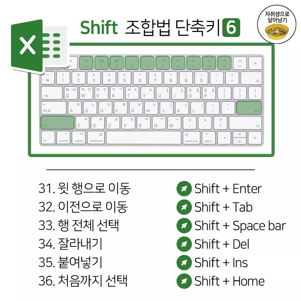 - 시트연속선택 Ctrl + Shift + PageUp / PageDown
